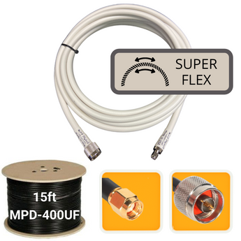 15 ft. Antenna Extension Ultra Flex Cable RP-SMA Male to N-Male MPD-400UF Super Flex White